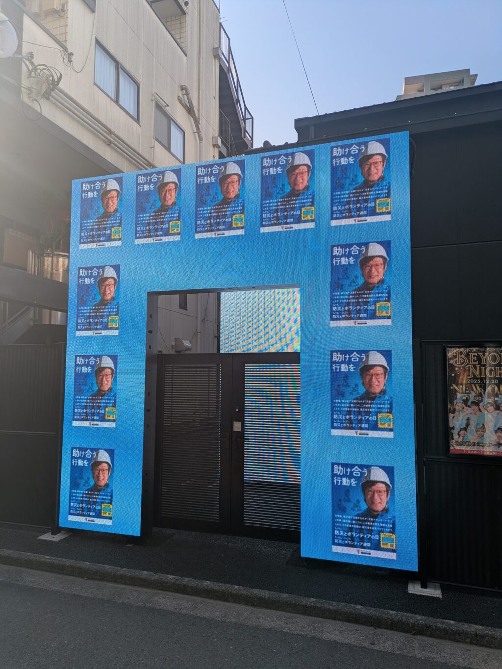 店舗入口のビジョンですが、昼と夜でこんなに違いが!