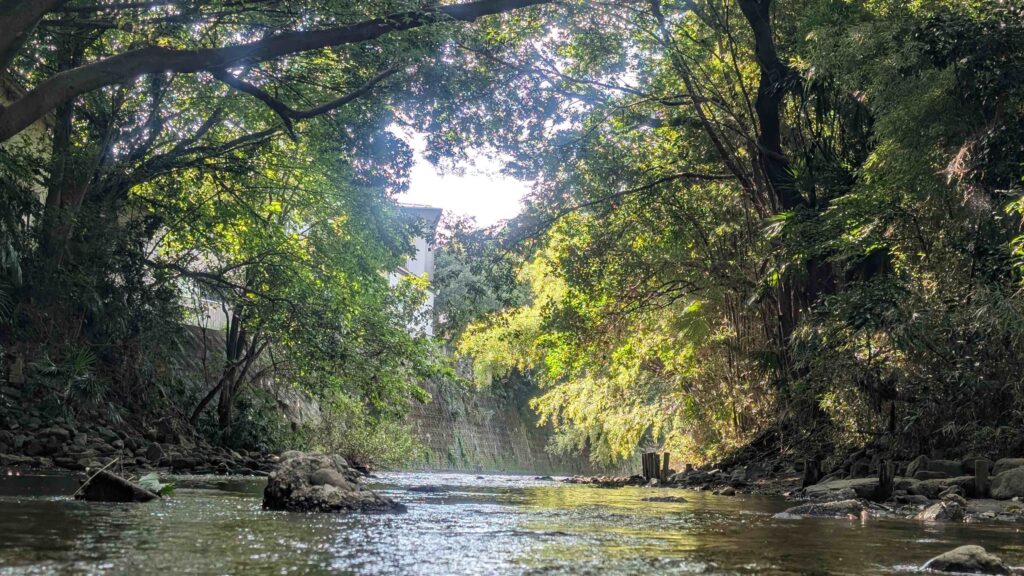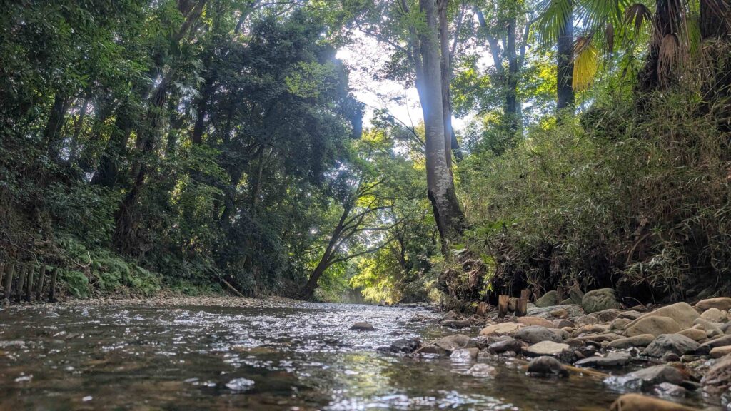川底がわかるくらい澄んだ水が流れており、とてもおだやかな気持ちになりますね。
