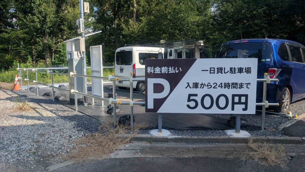 前払いチケット式の駐車場なので、チケットの購入を忘れずに。