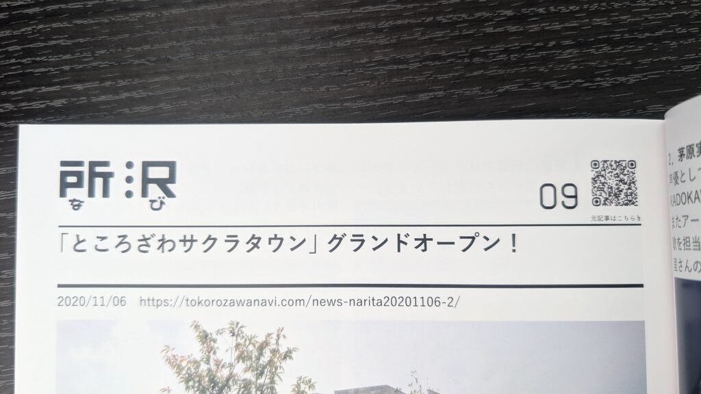 元の記事だけでなく「もっと他の記事も読みたい」と思われた方に向けても、QRコードから所沢なびへアクセスすることができるのでとてもありがたい工夫ですね。