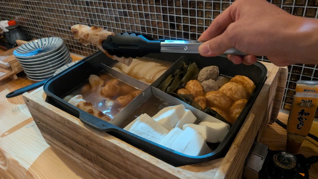 カウンターに設置されたおでん鍋からセルフで各自取っていくスタイルだったのですが、なんと具材がなくなったら補充してくれる神対応!